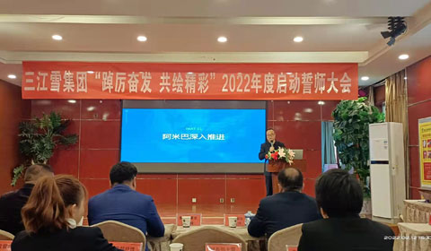2022年2月12日,融臻智慧客户单位——青海三江雪集团“踔厉奋进,共绘精彩”2022年度启动誓师大会胜利召开。融臻智慧组织生态架构师/三江雪集团战略顾问马添粮先生应邀参加启动誓师大会,并做《阿米巴经营模式深入推进及内训体系建设》的主题发言。