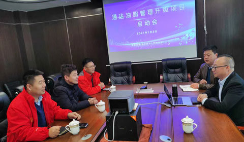 2021年1月,融臻智慧首席管理顾问、组织生态架构师马添粮老师、通达油脂董事长苏辉先生出席管理升级项目启动会;基于管理优化的需求,通达油脂与融智智慧签署管理升级专项服务协议。